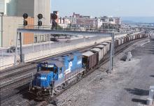 CR 8073 is seen on the rear of a EB ballest train at Altoona PA on 10/5/97.