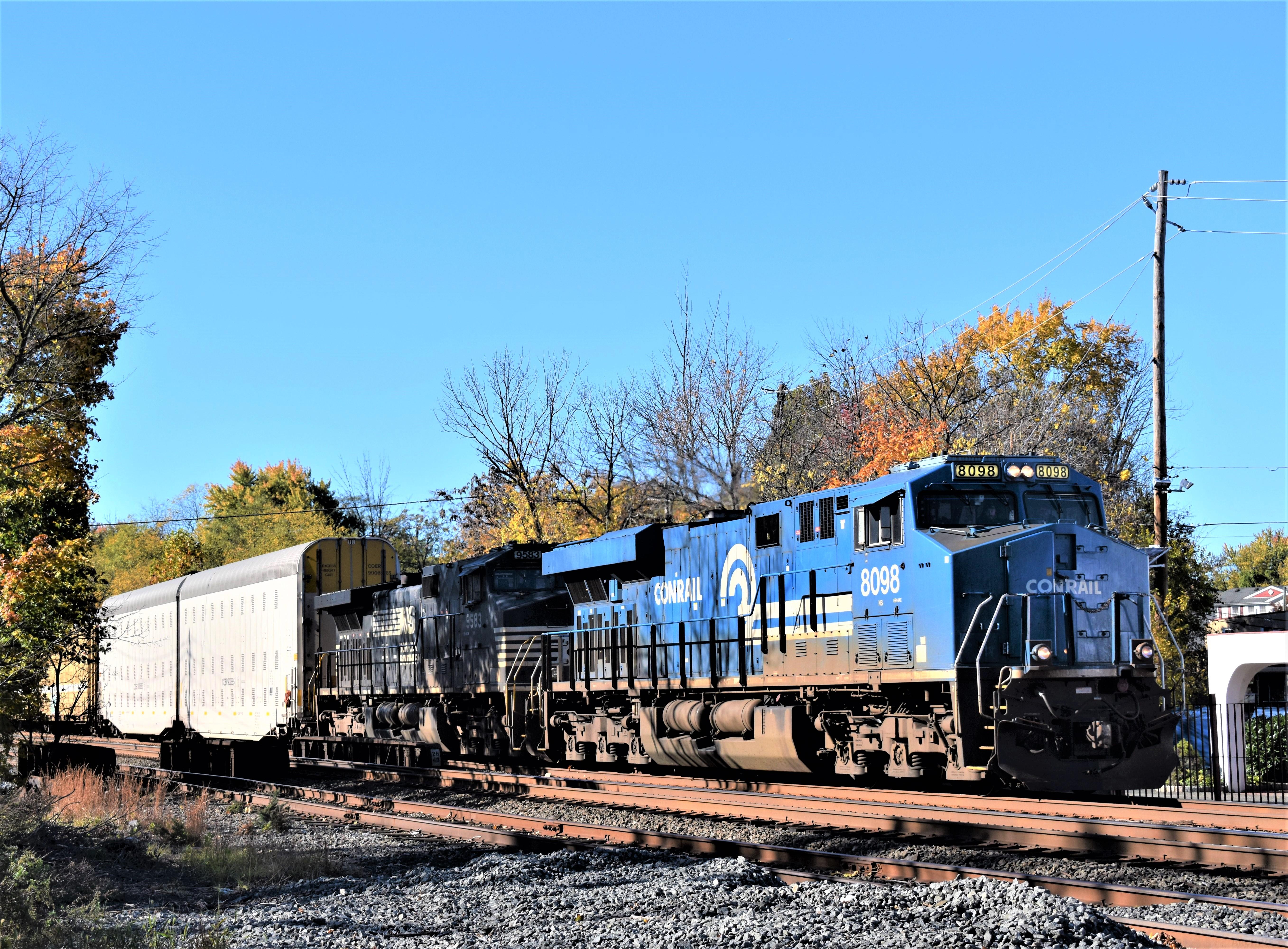 Conrail GE ES44AC #8098 & C40-9W #9583 on eastbound freight at Front St, South Plainfield, NJ. October 27, 2022. Although it is not a former Conrail, it is a Conrail Heritage unit painted for Conrail. I thought it would be nice to see a Conrail unit again in 2022!
