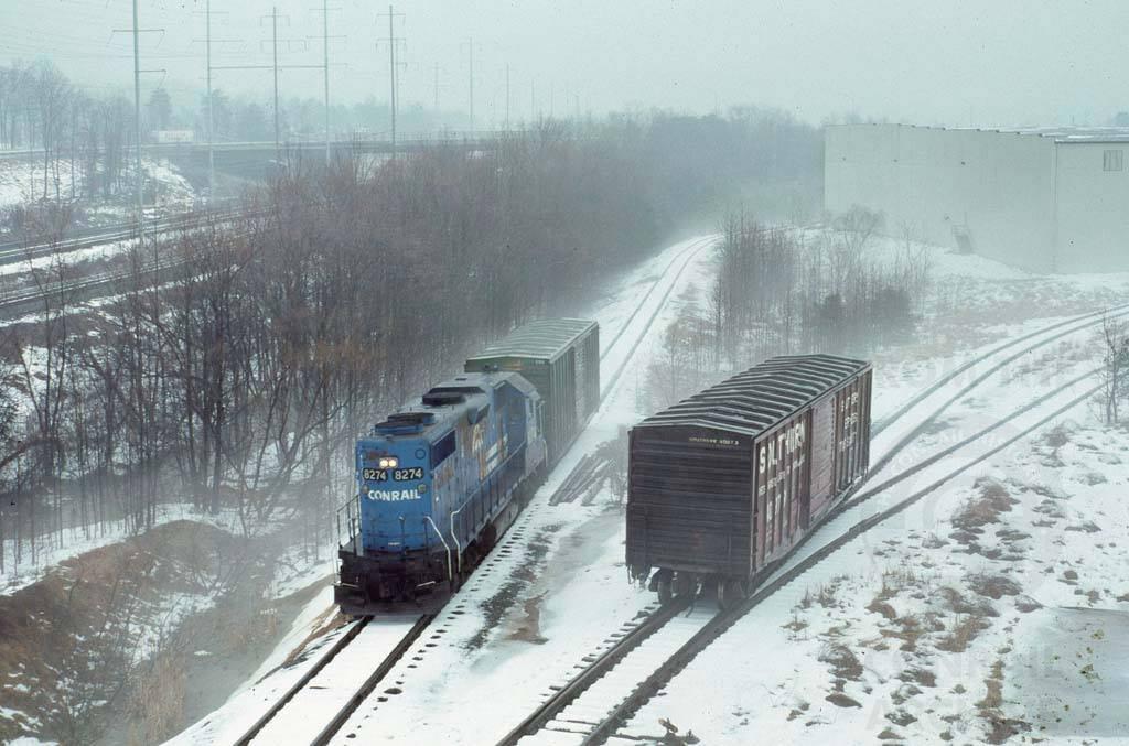 WHWA01 with CR 8247 is spotting Toys R Us (in the back) and Hechingers (to the right) in the Landover/Ardwick area on 03/17/93. Taken from the then new Rte 410 bridge.