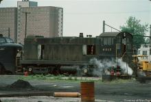 Pennsylvania Reading Seashore Lines Baldwin S-12 number 6017, rests by the E40 electrics at Harrisburg in May, 1977. This S-12 was the first of the eleven in PRSL's 60176021, 60286033 number series. Too bad the smoke rising was not from the Baldwin's stack! S-12 6017 did not make it into Conrail's original April 1976 roster.