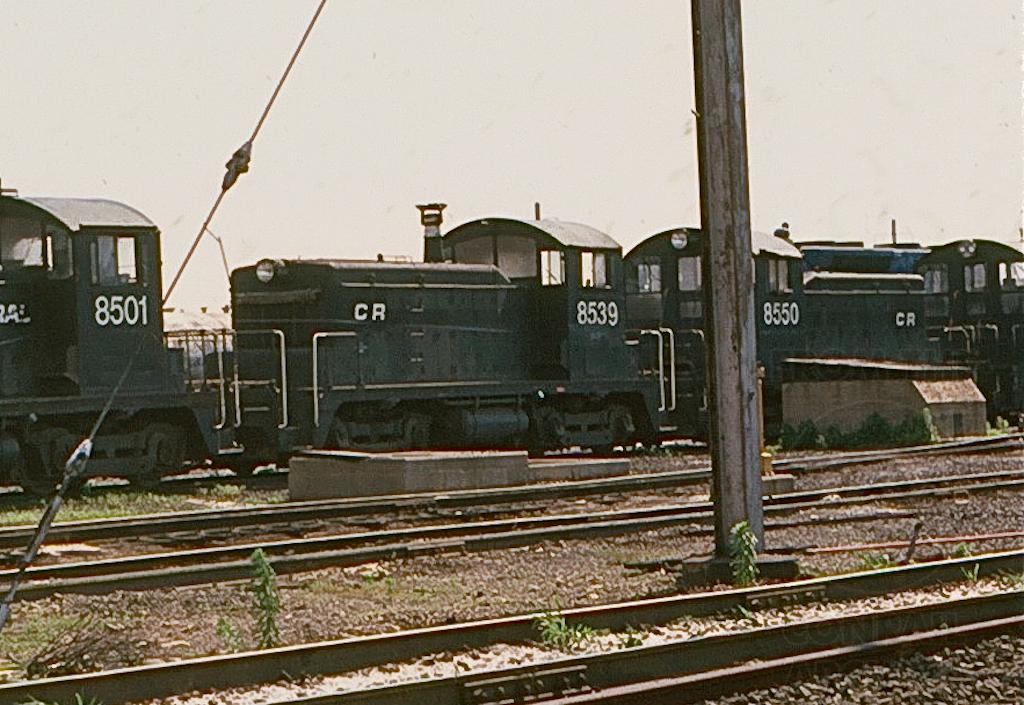 CR SW-1 8501, 8539, and 8550 rest in a line of retired units at Morrisville yard in June, 1980.