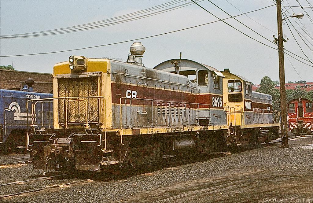 CR SW-8 8695 (ex-EL 366) and SW-900 9017 (ex-EL 446) teamed up at the Bethlehem engine terminal in July, 1979.