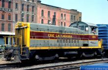 CR SW8 8698, still numbered as EL 369, shuffles freight at Binghamton.