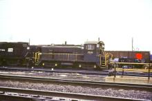 Former RDG SW900 1508, and soon to be CR 8708, hooks up with ex-PC RS11 7623 at Morrisville yard in April, 1977.