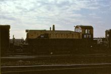 CR SW900 8711 (ex-RDG 1511) waits with other units for service at Morrisville in March, 1977.
