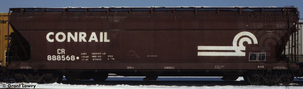 Previous Next Conrail 888568 is seen at Lancaster, PA in the mid 1980s. Car is ex PRR 259796. Photo By Grant Lowry Equipment Type Class H45 Conrail Number 888568 Collection CRHS Conrail Photo Archive Contributions