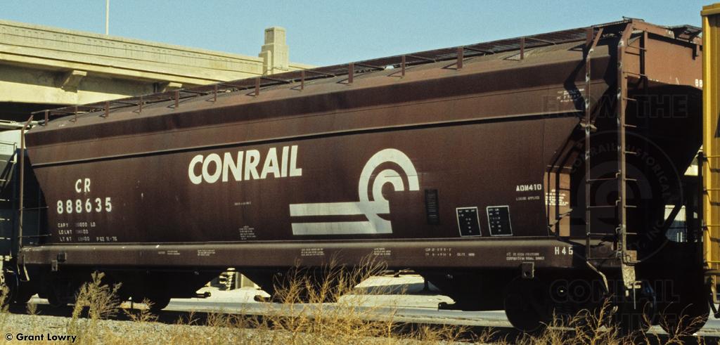 Previous Next Conrail 888635 is seen at Columbia, PA in the mid 1980s. Car is ex PRR 259843. Photo By Grant Lowry Equipment Type Class H45 Conrail Number 888635 Collection CRHS Conrail Photo Archive Contributions