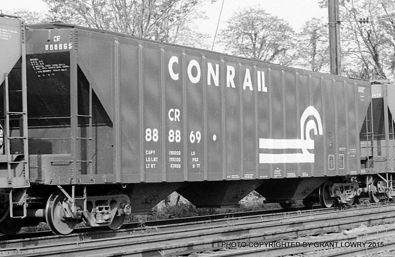 Previous Next CR 888869 is seen at Columbia, PA. Car is ex PCB 888869 and was built 8-71; was painted P62 5-77. It was deleted on 6/7/2010. Photo By Grant Lowry Equipment Type Class H54 Conrail Number 888869 Additional Galleries Grant Lowry's Photography Collection CRHS Conrail Photo Archive Contributions