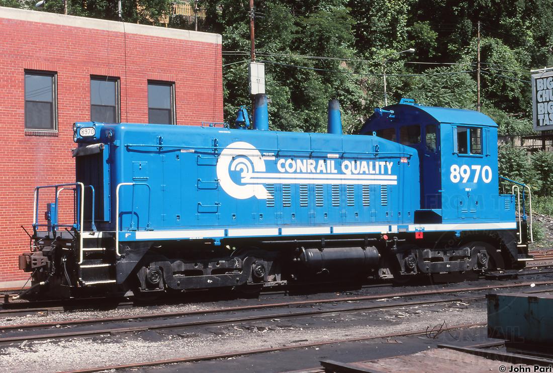 Previous Next Former PC/NYC 8970 is seen in fresh Quality paint at McKees Rocks, PA on 6/6/1993. Photo By John Pari Year 1993 Original Date 6/6/93 Location City McKees Rocks PA Conrail Number 8970 Additional Galleries John Pari's Conrail Locomotives Collection CRHS Conrail Photo Archive Contributions