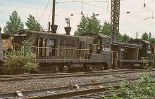 CR SW-1200M 9304 (ex-RDG Baldwin VO1000M 2704) between a GG-1 and SW9 8986 in lines of power outside the Morrisville shops in July, 1978.
