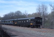 Theater car #9 at the rear of OCS301 in Meriden, CT. on May 3, 1990.