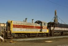 CR SW-9 9023 (ex-EL 452) rests, along with CR-operated NJDOT U34CH 4177 (ex-EL 3377), at Elizabethport in November, 1978.