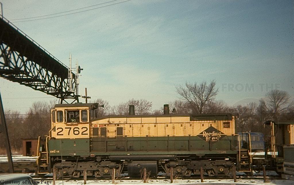RDG SW1500 2762 (CR 9612) idles by the signal bridge between switching assignments at Abrams yard on January 3, 1977.