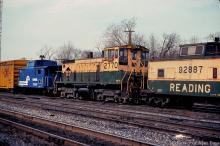 RDG SW1500 2770 (CR 9620) works Abrams yard sandwiched between ex-PC N5B 22841 and RDG N4 92887 (CR 18752) cabooses.