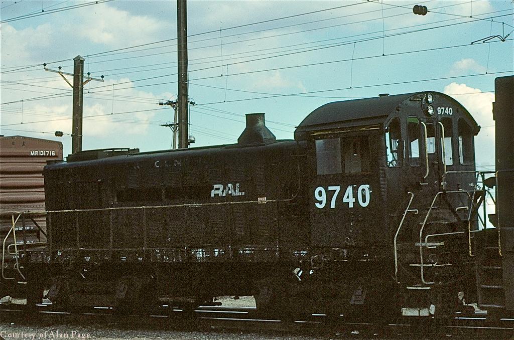 E-44's 4446 and 4401 have Alco S-2 9740 tagging along as they pause with their mixed freight at Morrisville in April, 1977.