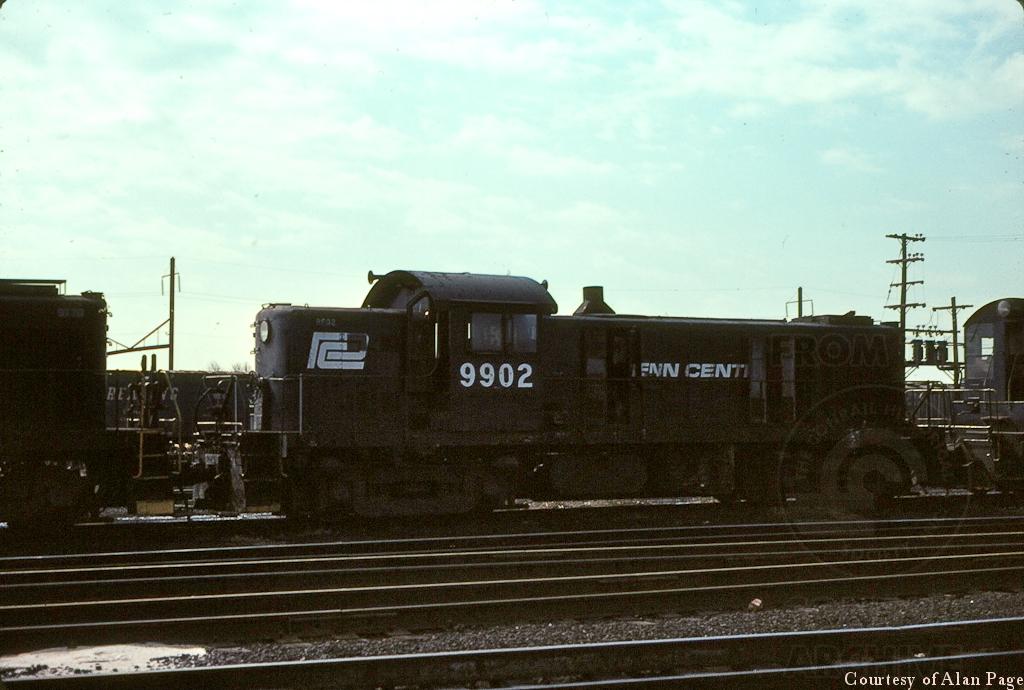 Former PC RS-1 9902 rests in a line of mostly retired Alcos at Morrisville in March, 1977.