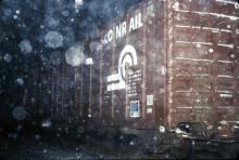CR. A Conrail boxcar on a snowy night in December 1985. An unusual photo since hardly anyone took snow pictures at night. The flash reflects the snow and the photo is not as good...Oh Well!