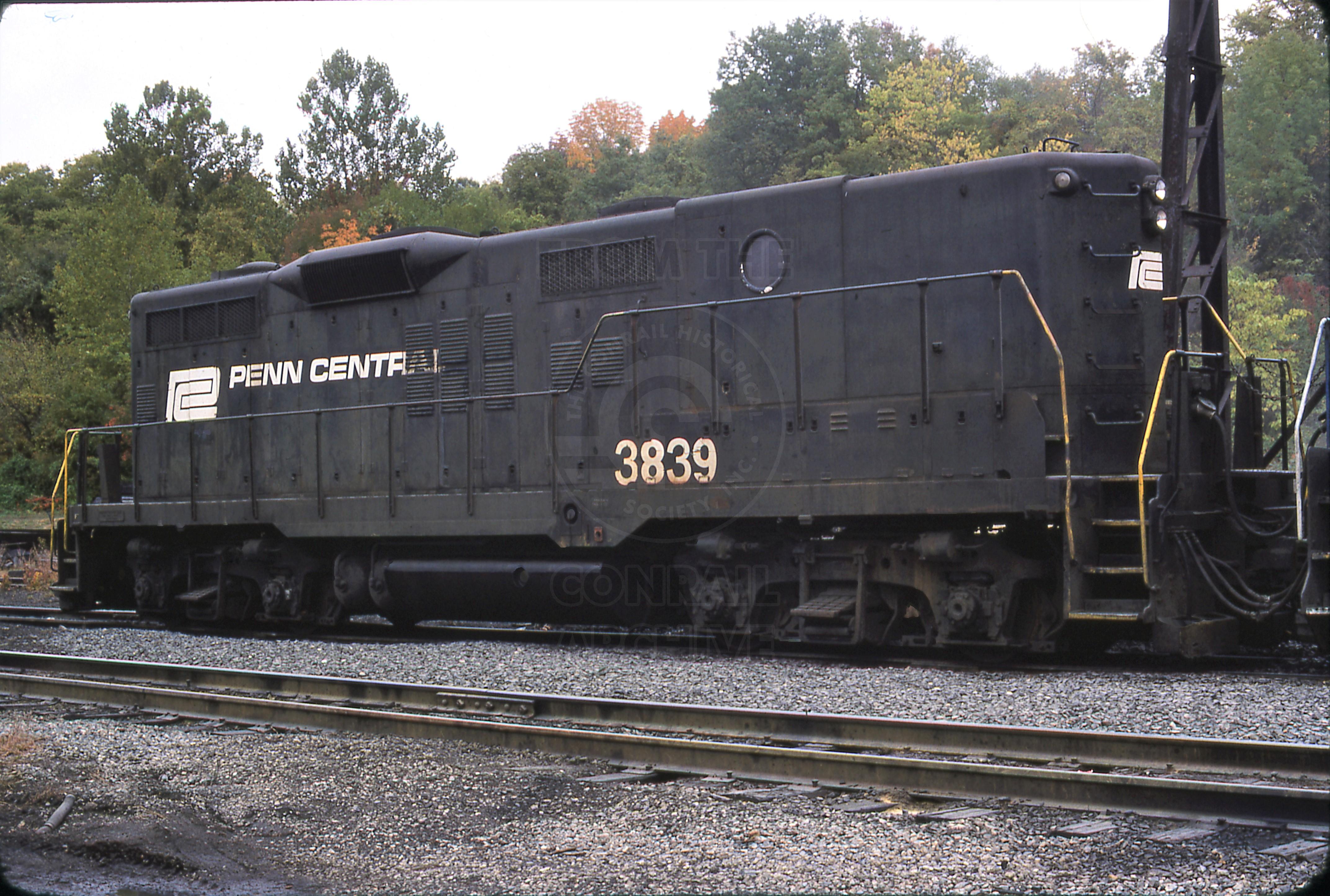 Ex PRR & PC GP-9B #3839 at Allentown-Bethlehem, PA engine terminal. October 1977. Photo Steve Bonscher collection of Barry Trogu