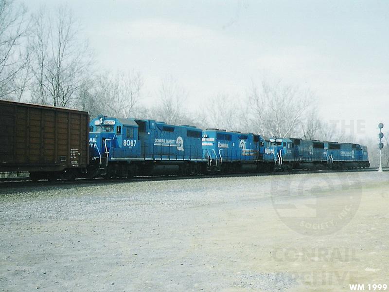 Conrail has two months left as this eastbound manifest heads east into the yard with four EMDs. This train may have been CAAL. Unfortunately my dad didn't keep notes so I'm 100% sure about that.