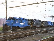 CR. GP-10 #7567, GP38 #7671, GP-9 #7242 & #7164 Harrisburg, PA. August 16, 1977
