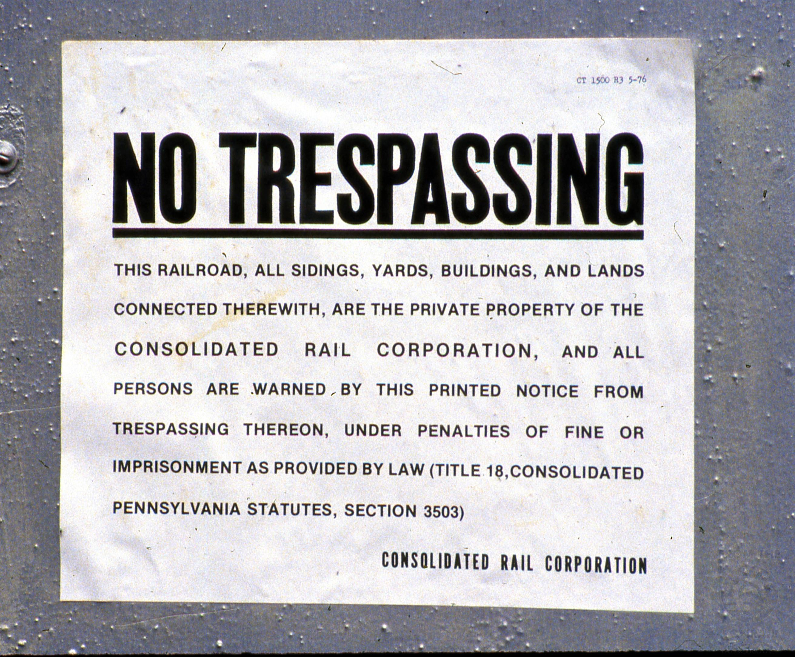 CR. No Trespassing! Sing near Rockville Bridge, on the Marysville, PA side in April 28, 1984