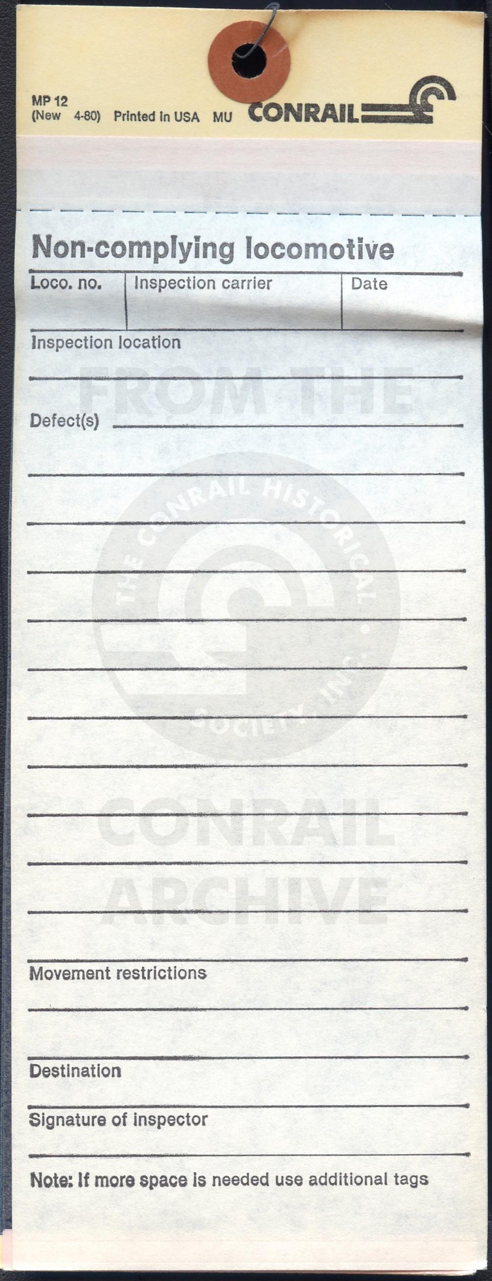 Conrail. Non-complying locomotive form MP-12. Over the decades, I acquired many papers, forms etc about Conrail. Some provide insight to the daily operations of Conrail.