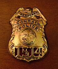 Previous Next Conrail Police Sergeant's Badge (with Indiana state seal) Photo By Rich Bowes Subject(s) Conrail Police Equipment & Uniforms Collection CRHS Conrail Photo Archive Contributions