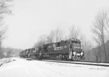 C30-7A 6586 on the point of SEFR at Old Dalton Rd. in Hinsdale, MA. on Dec. 28, 1989.