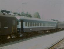Vintage Reading Company "blue-liner" 9117, rebuilt in 1964-65, in a line of olive and blue MU's taking the Sunday layover at Warminster station. The extra cars were needed for the Monday morning rush to Reading Terminal.