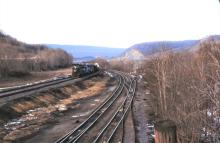West end Enola view of incoming freight. The photo shows how the caboose could couple onto a departing freight from the gravity track (pimple track) to either track. I figured it would show the trackage and crossovers for those who never saw that operation in the PRR, Penn Central and very early Conrail days. I took the photo in March 1984. If anyone was modeling Enola on a Conrail model railroad around 1976 to the mid 1980's, this photo might be helpful for them. There some views of how the Enola caboose gravity track worked on YouTube. I know Ed Kaspriske has a short 8mm film of this operation on YouTube.