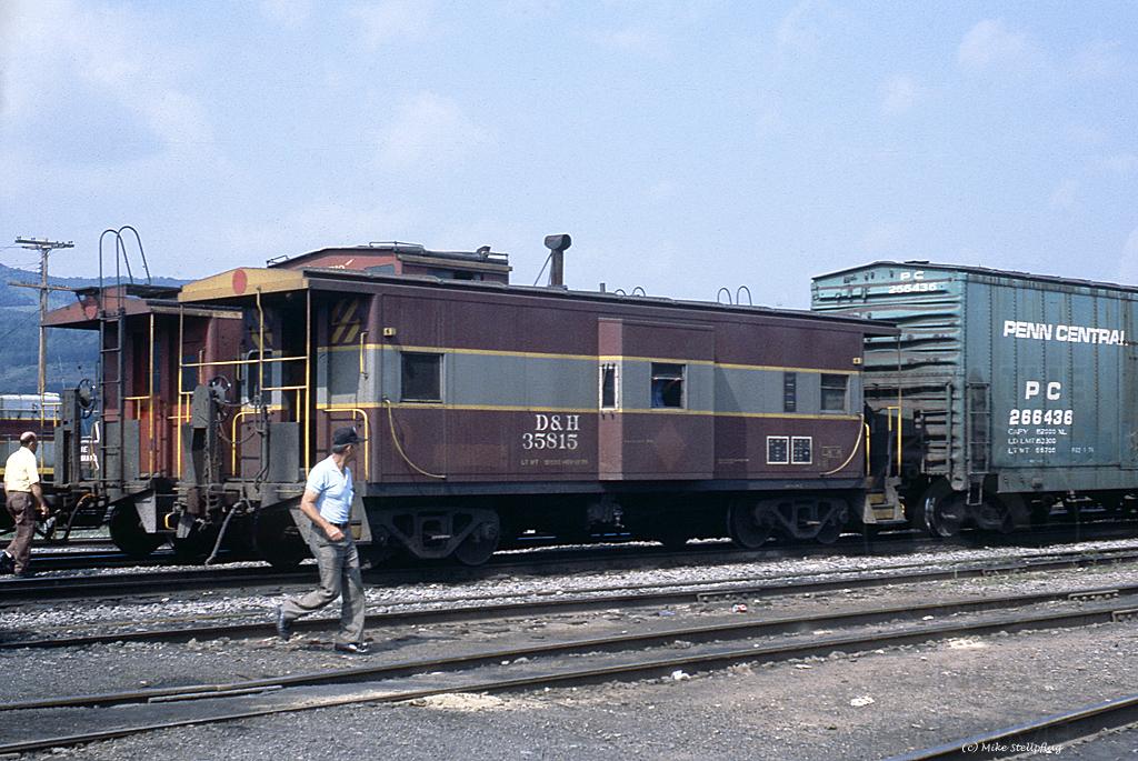 Once upon a time, the back ends of trains used to be just as interesting as the front end. A couple of crewman are seen at the back end of 2 different Westbound D&H freights that are ready to depart Hornell.