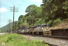 Previous Next D&H 7613 leads a quartet of GP-39-2's on CR rails near Enola in May, 1981. Photo By Alan Page Year 1981 Original Date 5/26/81 Location City Rockville PA Additional Galleries Alan Page's CR: 5-1981 to 4-1982 Subject(s) Foreign Power on Conrail Collection CRHS Conrail Photo Archive Contributions