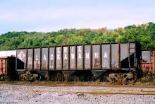 Another fallen flag -- EL hopper 33678 at Holidaysburg, PA on Oct. 3, 1994. Doug Davidson photo with permission