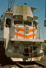 A lot of road dirt sports the nose of EMDX 1975 at the Harrisburg engine terminal in June, 1977.