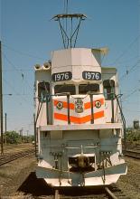 The only clean spot on EMDX 1976 GM10B was the nose as the big electric sat waiting for assignment in Harrisburg in June, 1977.