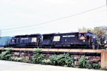 Ex-Penn Central. GE U-30B #2941 & GP- 40 #3193. New Brunswick, NJ. September 30, 1977. Old Kodak Ektachrome does not age very well.