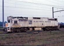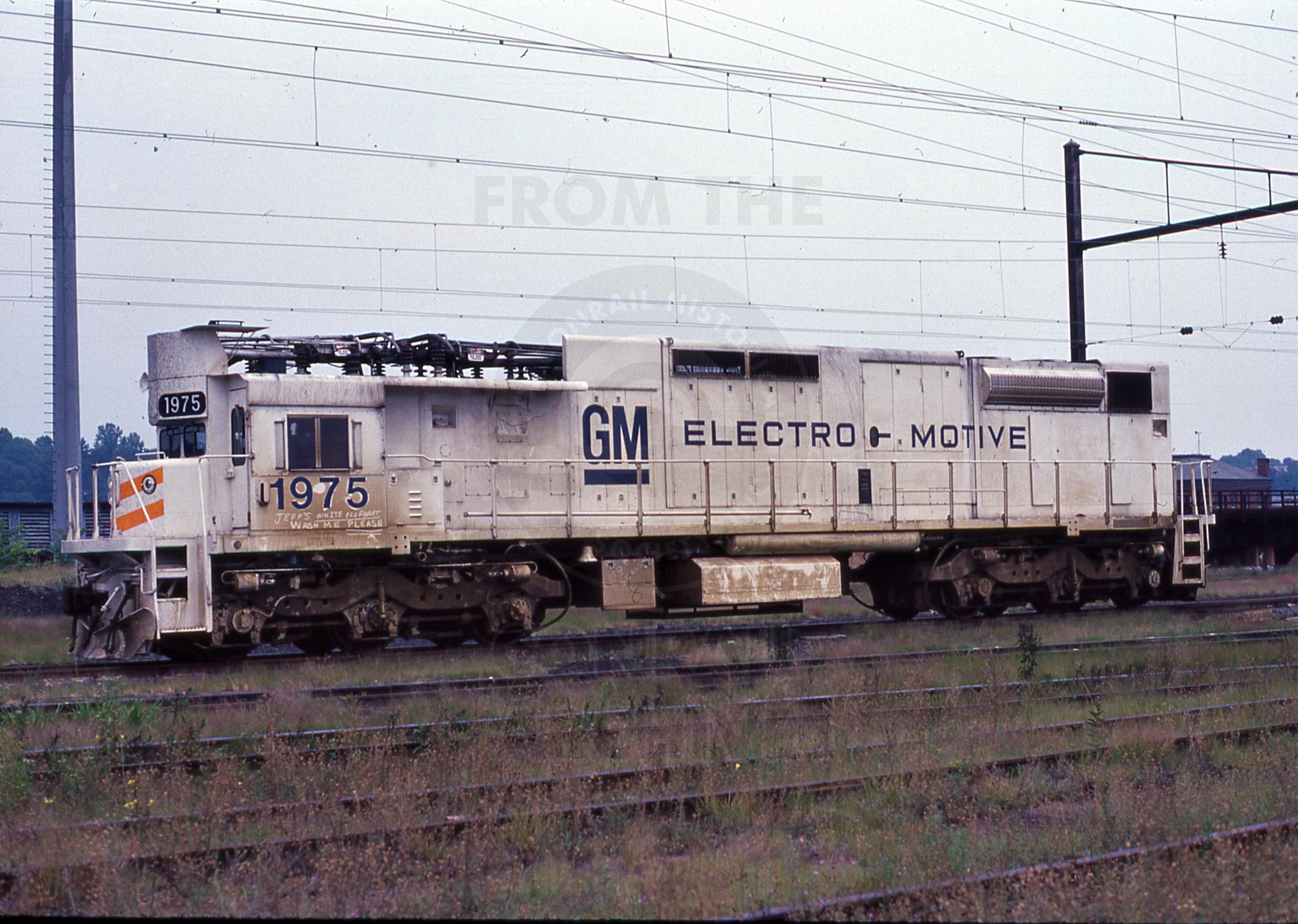 Conrail. GM experimental electric #1975 at McClay St yard in Harrisburg, PA. Sep 15, 1977.
