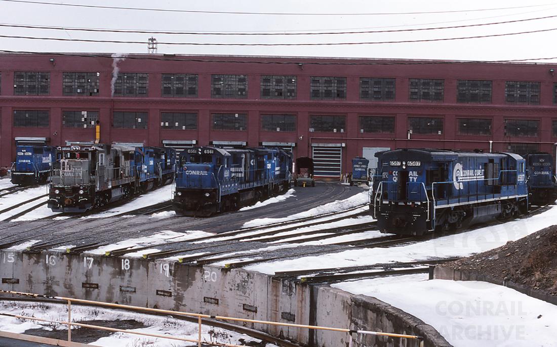 Previous Next CR 6587, 6561 and 6619 undergoing wreck repairs can been seen in this view of JBS on 1/26/99. Photo By Jeff Weaver Year 1999 Original Date 1/26/99 Location City Altoona PA Collection CRHS Conrail Photo Archive Contributions