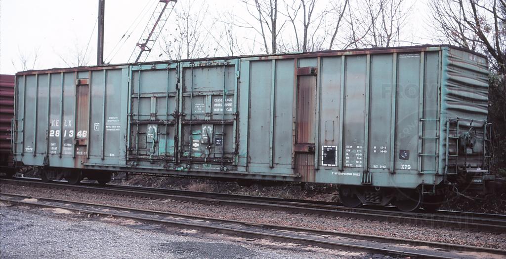 KELX 281346 is seen at Lancaster PA on 11/22/97. Car is ex PC 281346 and was built 5-79.