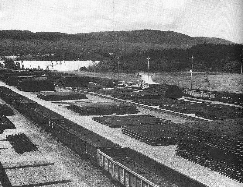 Previous Next An overhead view of the outside storage area where new and fit rail is stockpiled according to weight and class. Photo By Conrail Year 1982 Location City Lucknow PA Collection CRHS Conrail Photo Archive Contributions