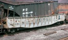 Previous Next LV 32871, loaded with wrecked PC 461066 (former New Haven), passing through Youngstown, OH in June 1978. Photo By Unknown Year 1978 Original Date 6/1/78 Predecessor Paint Scheme LV Collection CRHS Conrail Photo Archive Contributions