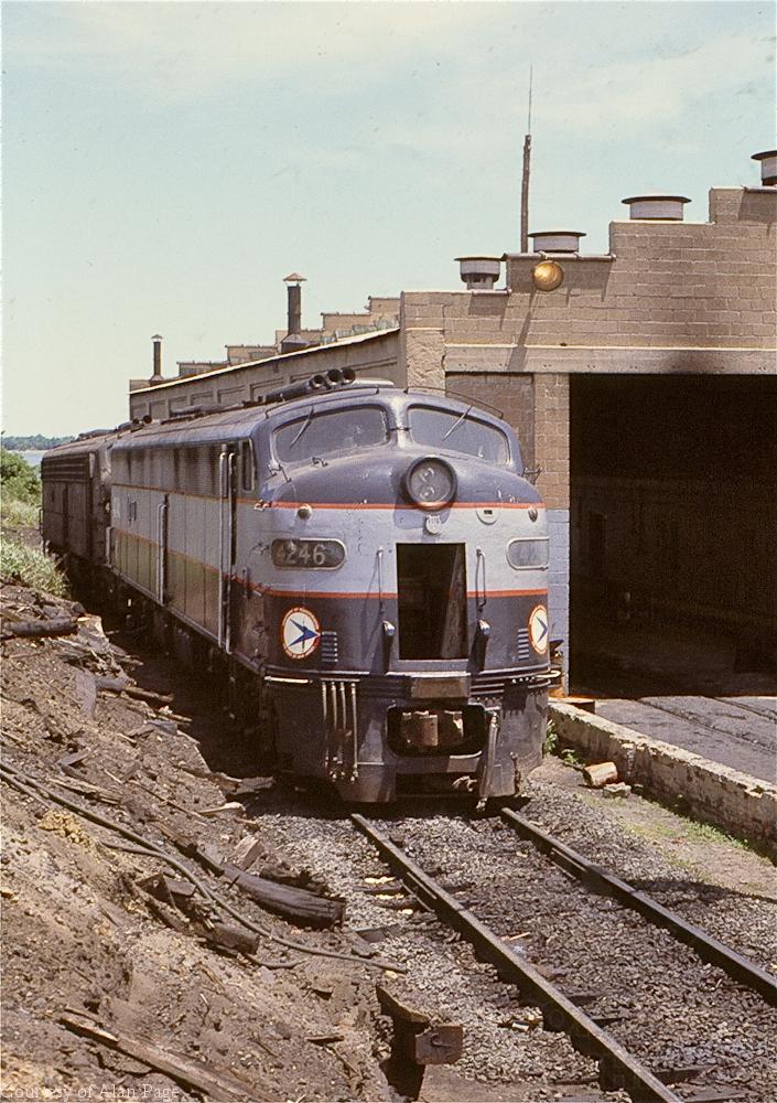 With nose door open, CR-operated former PC E-8A 4246 rests outside the South Amboy engine facility in July 1978.