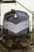 NJDOT E-8A 4285, rebuilt in December, 1978 by ICG from ex-PC 4325, rests at the South Amboy engine terminal in August, 1979. The original PC 4285 was traded to ICG in August, 1978 and scrapped in 1981.