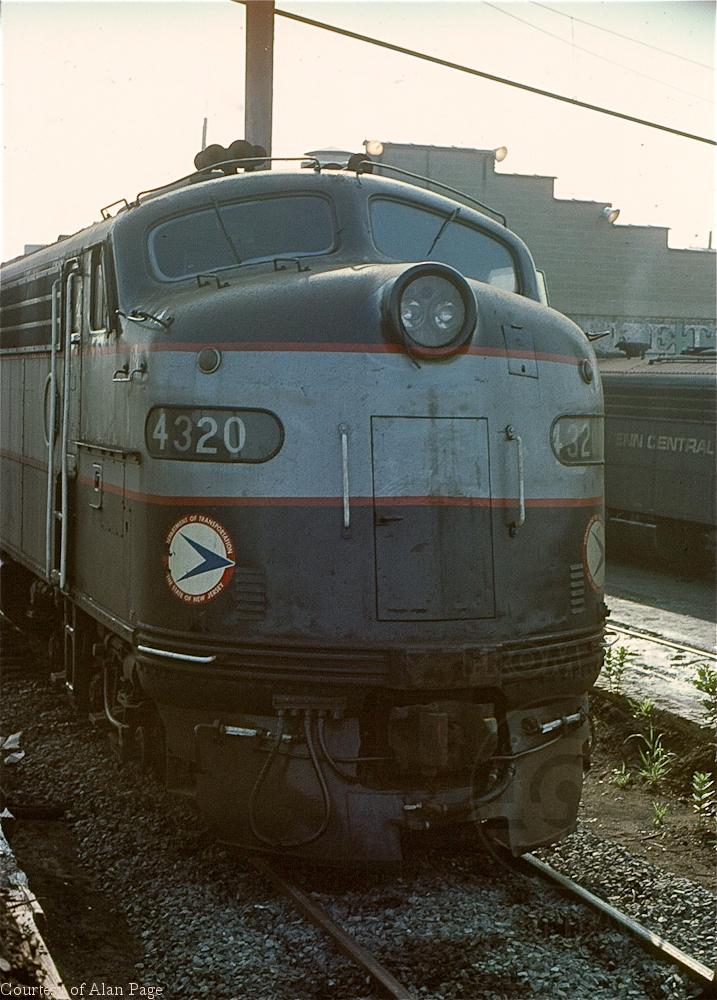 CR-operated E-8A 4320 rests with a pair of ex-PC Alco RS-11's and CR SW-7 8877 (ex-LV 222) beside the South Amboy diesel shop. Former PC 4320 was rebuilt by GE in 5/1977 and sports NJDOT colors on July 10, 1977.