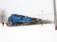 NS 8461 ( EX-Conrail-LMS 721) leads a freight in the NS freight in the Conneaut Ohio yard on this snowy December day.