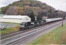 Previous Next Westbound NS intermodal train with NS 9613 and 7618 for power at Summerhill, PA on Oct. 25, 2008 Photo By Chris Howe Collection CRHS Conrail Photo Archive Contributions