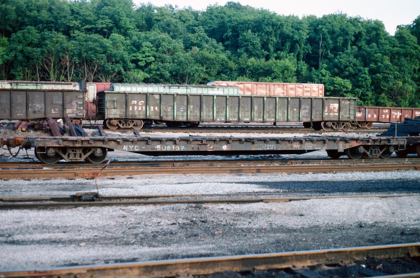NYC 506137 was photographed in the yard at Lewistown, PA on 7/7/92. Car was built 4-60. It was deleted on 3-23-94.