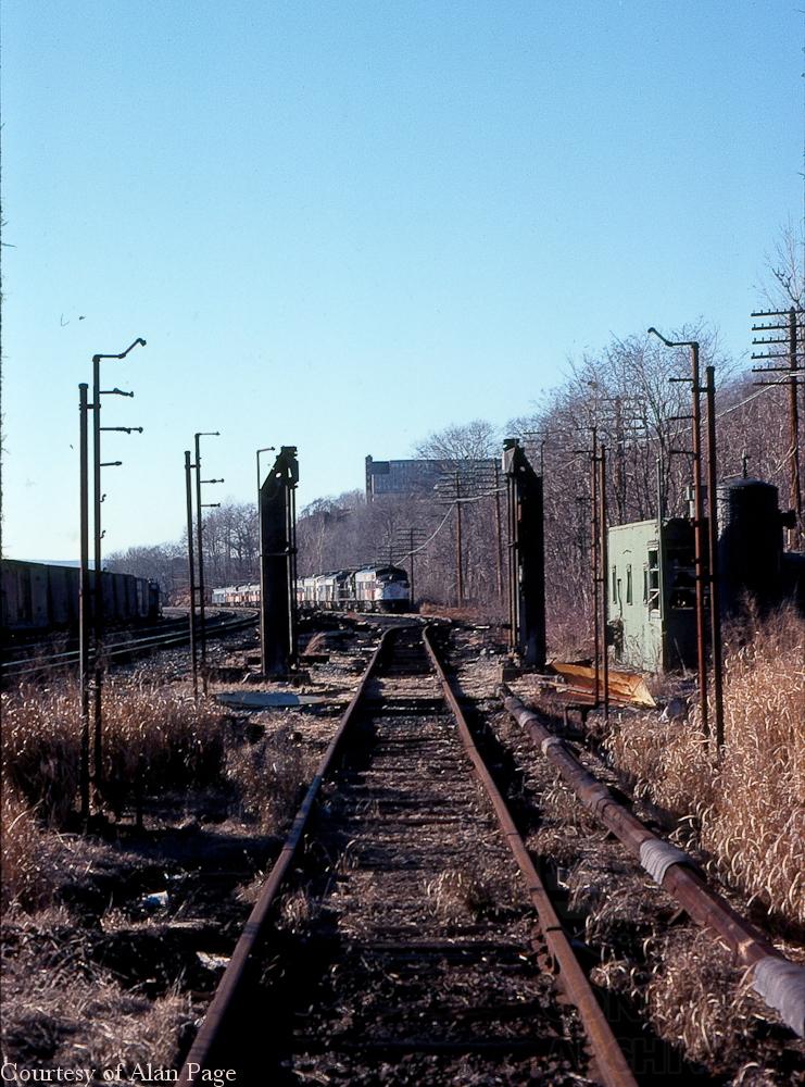 PC FL-9 5030 at the front of a line of retired FL-9's at Harmon, NY in February, 1979.