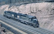 Conrail just 10 days old, two PC SD45s in helper service head back to Altoona.