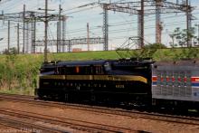 PRR GG-1 4935 passes by Arsenal Tower in Philadelphia during it's inaugural run from Union Station to New York.